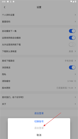 4、在下方彈出的提示,點擊退出登錄的按鈕即可完成。