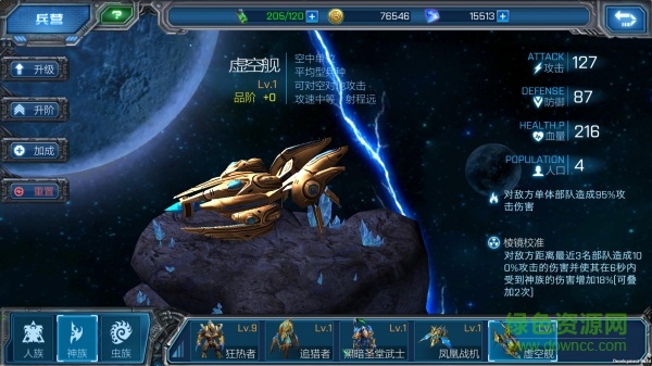 虛空艦:均衡性空中單位,擁有讓友軍傷害持續(xù)增加的能力。