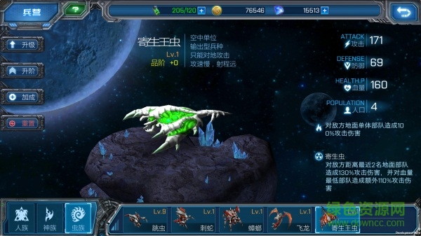 寄生王蟲:蟲族高級空中單位,只能對地面攻擊,不但輸出驚人,而且射程也很遠(yuǎn),只有對空單位能堆它很好克制。