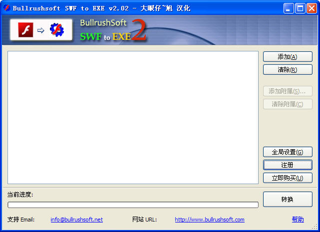 Bullrushsoft SWF to Exe 是一款Flash轉EXE轉換工具,它能夠快速的把flash轉換會成為EXE格式的工具,而且操作簡單,直接導入文件,然后選擇自己需要的格式,就能一鍵 成功轉化了,安裝起來也是好不費事情,喜歡就來綠色資源網(wǎng)下載吧!。