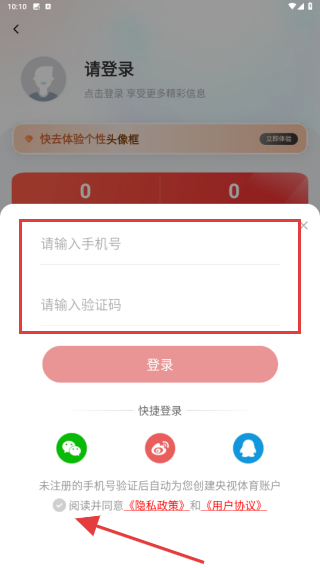 3、登錄方式包含了:手機(jī)號(hào)、微信、微博、QQ等,輸入手機(jī)號(hào)獲得驗(yàn)證碼并勾選隱私政策與用戶(hù)協(xié)議。