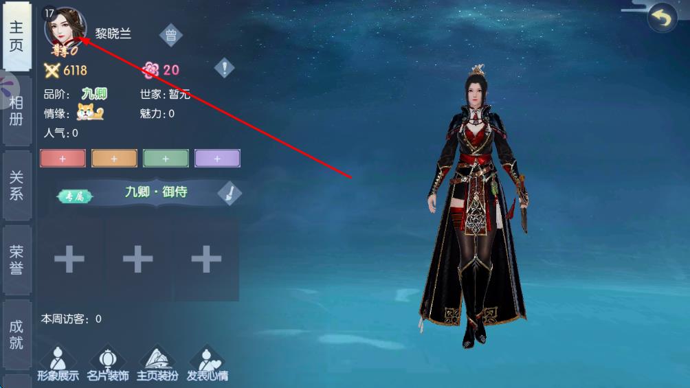 2、在打開(kāi)的個(gè)人信息界面中,再次點(diǎn)擊角色頭像位置。