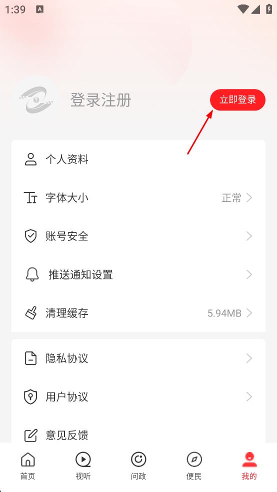 3、在個(gè)人頁面上方看到“立即登錄”按鈕,點(diǎn)擊“立即登錄”,進(jìn)入免密登錄界面。