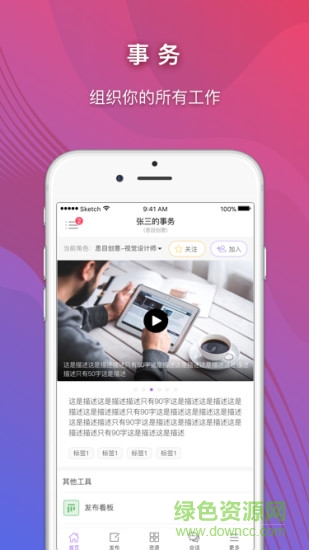 【事務(wù)】事務(wù)即您所加入的所有組織。組織以樹形架構(gòu)建立,您所加入的事務(wù)為您進(jìn)行所有工作的中心,未加入的事務(wù)您可以通過關(guān)注來查看最新動(dòng)態(tài)。