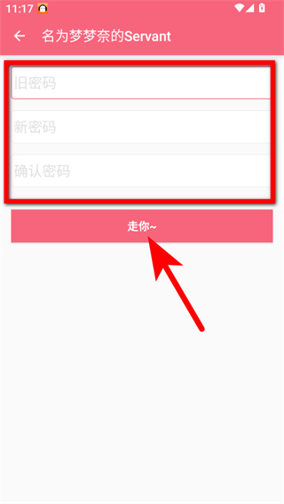 3、輸入舊密碼、新密碼、確認(rèn)密碼,輸入完成后,點(diǎn)擊走你~按鈕。