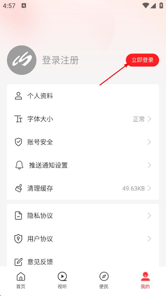 2、在個(gè)人中心頁面,找到“立即登錄”按鈕并點(diǎn)擊,進(jìn)入登錄注冊界面。