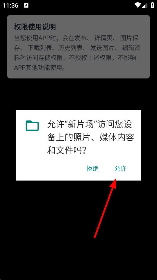 2、如果是首次發(fā)布,可能會彈出權(quán)限使用說明,隨后彈出詢問是否允許訪問設(shè)備上照片、媒體內(nèi)容和文件的窗口,點擊允許。