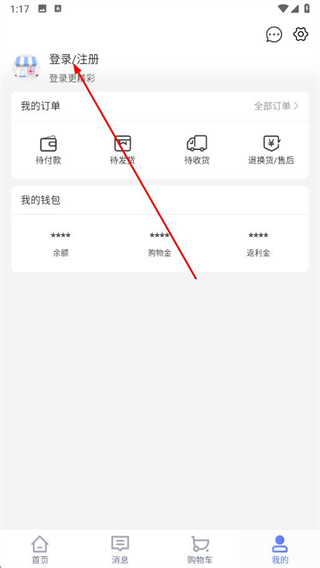 2、在我的頁(yè)面中,點(diǎn)擊登錄/注冊(cè)選項(xiàng)。