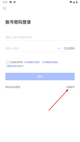 3、在賬號(hào)密碼登錄頁(yè)面,點(diǎn)擊右下角注冊(cè)賬號(hào)選項(xiàng)。