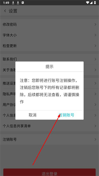 4、在彈出的提示框中,點擊注銷賬號,完成賬號注銷操作。