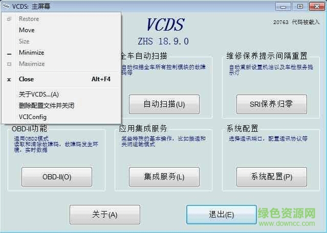 ·在 VCDS 主屏幕的系統(tǒng)菜單(點(diǎn)擊 VCDS 主屏幕左上角)加入 VCIConfig 快捷方式