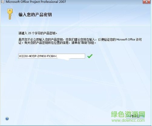 2、輸入Project_2007密鑰,點(diǎn)擊繼續(xù)