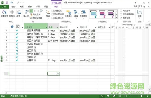 8、上面只是簡單的制作一個計(jì)劃的project文件,實(shí)際計(jì)劃內(nèi)容不只是這么簡單,還包括了各種人力、物力資源設(shè)置、各任務(wù)的前后順序等邏輯關(guān)系;