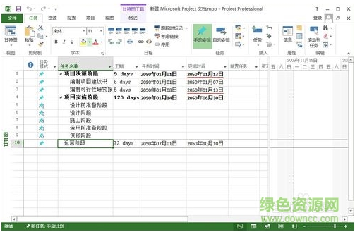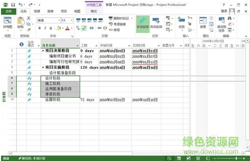 4、在任務(wù)名稱中依次輸入計(jì)劃內(nèi)容,各階段名稱、各任務(wù)名稱等