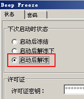 1. 按下冰點(diǎn)還原快捷鍵(Ctrl+Alt+Shift+F6),調(diào)出冰點(diǎn)還原的設(shè)置界面,將狀態(tài)設(shè)置成“啟動(dòng)后解凍”,然后點(diǎn)擊在“應(yīng)用并重啟”。
