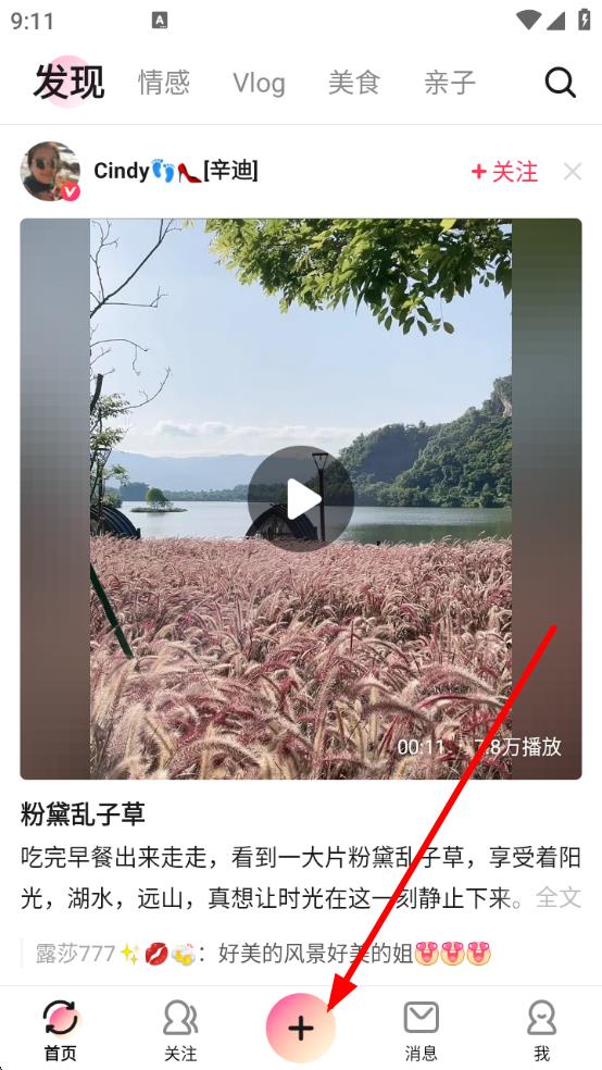 1、打開美拍APP,進(jìn)入首頁界面,點(diǎn)擊底部導(dǎo)航欄中間的加號(hào)圖標(biāo),進(jìn)入拍攝頁面。