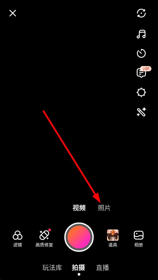 2、在拍攝頁面中,選擇拍攝模式,點(diǎn)擊照片選項(xiàng),確定以照片模式進(jìn)行拍攝。