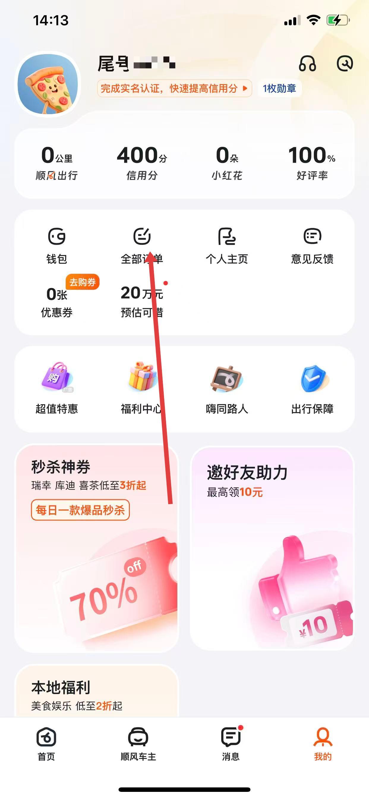 3、進(jìn)入全部訂單頁(yè)面后,即可查看以往的乘車記錄等相關(guān)訂單信息。