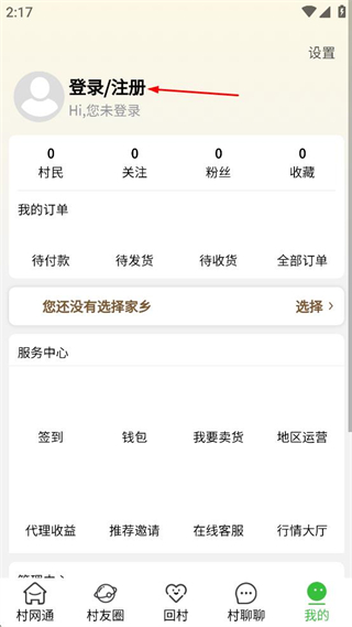 1、打開村網(wǎng)通APP,點擊首頁右下角我的。