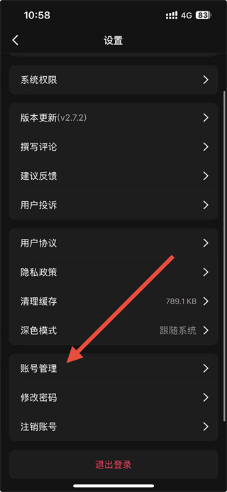 3、進入設置頁面后,點擊賬號管理選項,進入賬號管理頁面。