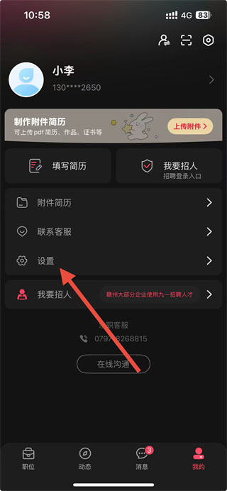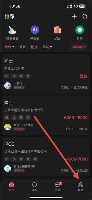1、打開九一人才網APP,點擊右下角我的進入個人頁面。