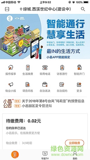小邑app是一款專業(yè)的提供物業(yè)管理服務的手機軟件,致力于打造高品質(zhì)的社區(qū)服務平臺。用戶在上面不僅可以享受到便捷的生活服務,還可以享受到高質(zhì)量的教育、旅游等服務。感興趣的朋友快來綠色資源網(wǎng)下載體驗吧?。?