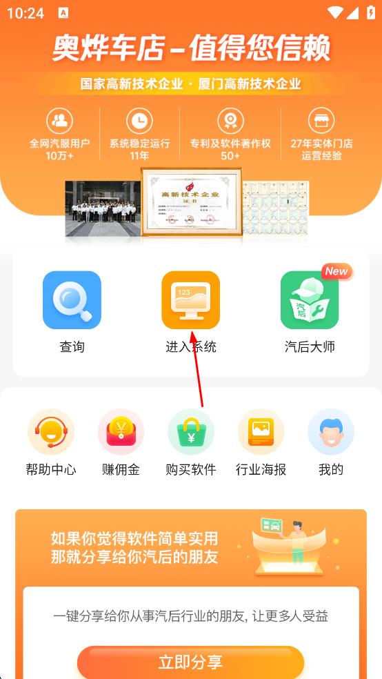 2、進入APP主頁面,點擊“進入系統(tǒng)”選項,進入登錄準備頁面。