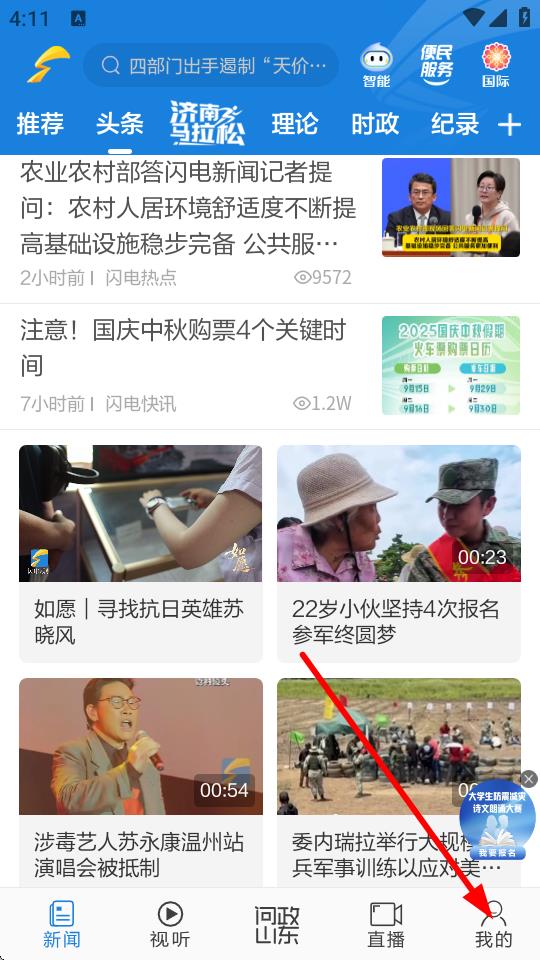 1、打開閃電新聞App,點擊底部導航欄最右側(cè)的我的選項。