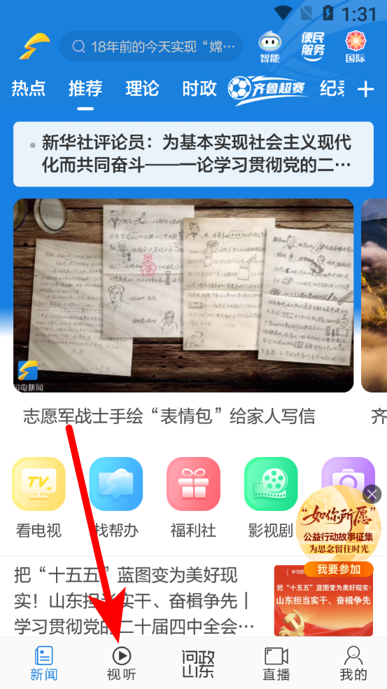 1、在閃電新聞主頁面,點擊下方視聽選項,進入視聽頁面。