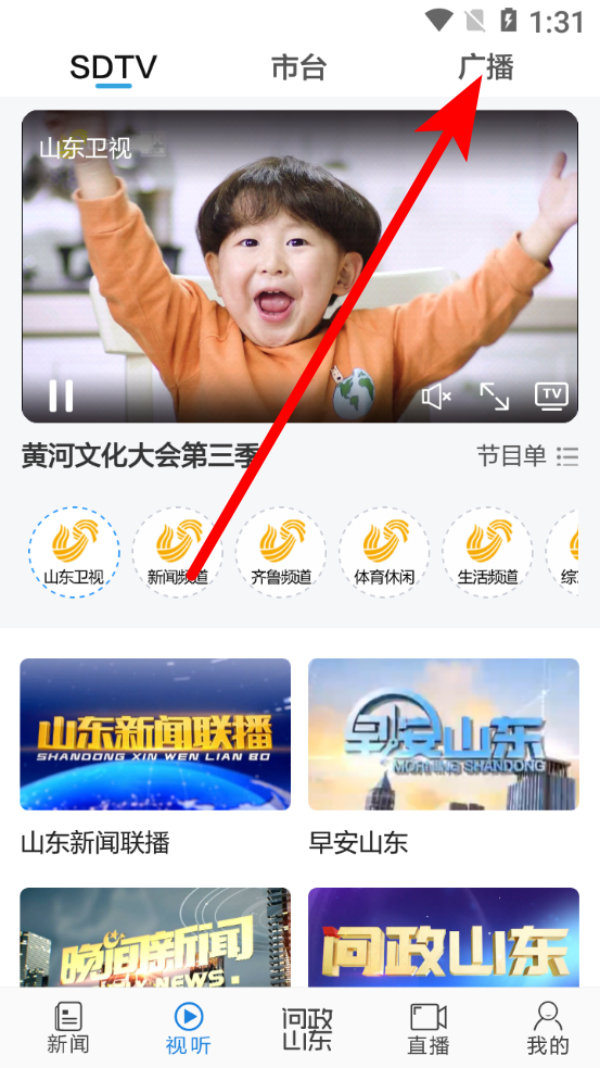 2、在視聽頁面,點擊上方廣播選項,進入廣播頻道選擇頁面。