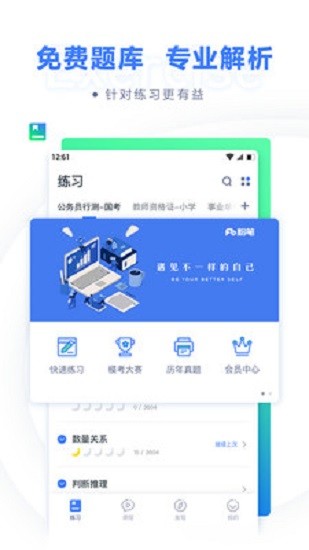 數(shù)百萬(wàn)用戶正在使用的公考、事考、教師、司法、考研、建造、醫(yī)療、會(huì)計(jì)考試的提分利器,高品質(zhì)直播課+海量題庫(kù),公考、教師、司法、考研、建造和會(huì)計(jì)考試的好幫手。