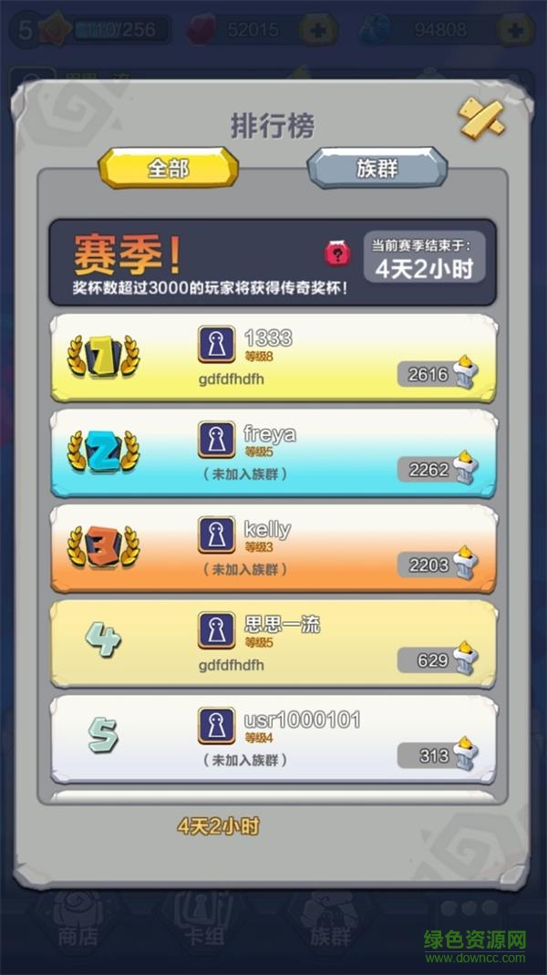 玩家根據(jù)戰(zhàn)斗勝利時獲得的火把數(shù)量進(jìn)入競技場,火把數(shù)越多,競技場等級越高,開箱子得到的金錢越多,卡片數(shù)量和種類越多,兵種升級越快,對戰(zhàn)勝率越高,能打到的火把也越多。玩智慧,搶獎杯,奪食物,與敵人斗智斗勇,在7天的賽季中最終稱王!