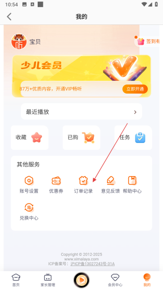 2、在個(gè)人中心頁面的其他服務(wù)板塊中,找到并點(diǎn)擊訂單記錄圖標(biāo),進(jìn)入訂單管理界面。