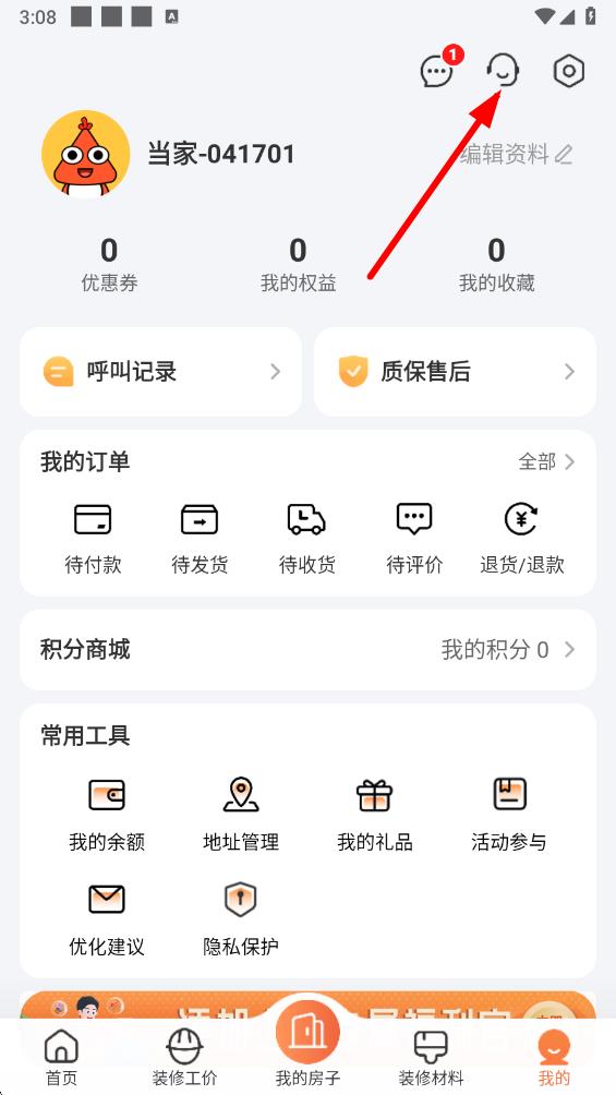 2、在我的界面中,找到并點擊頭像區(qū)域右上方的客服圖標。