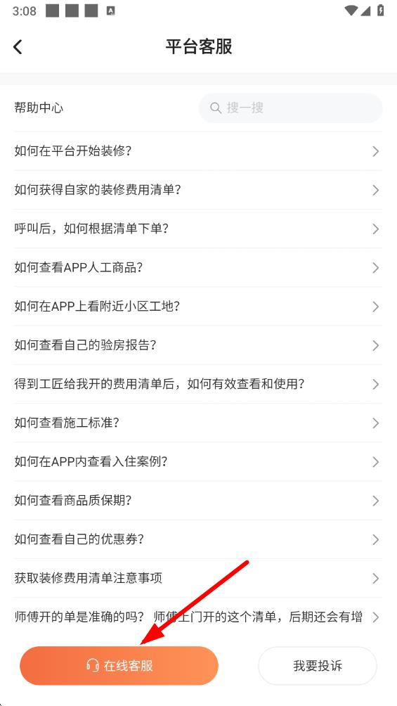 3、進入平臺客服界面后,點擊底部的在線客服按鈕。
