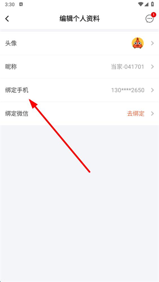 3、進入編輯個人資料頁面后,點擊綁定手機選項。