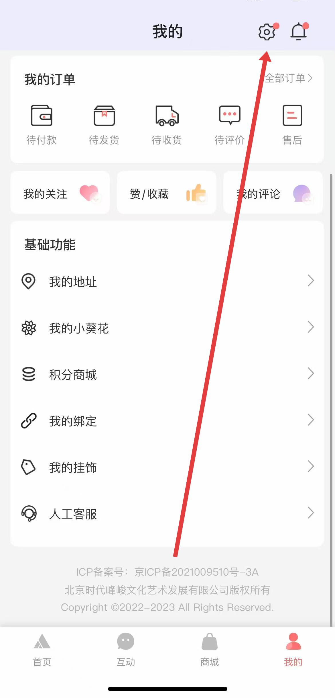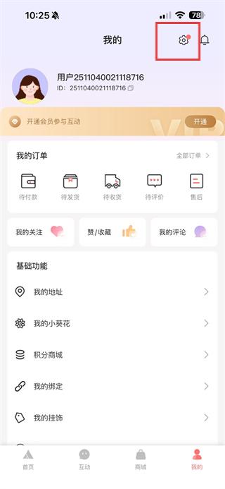 2、在個人頁面中點擊右上角設置圖標,進入設置頁面。