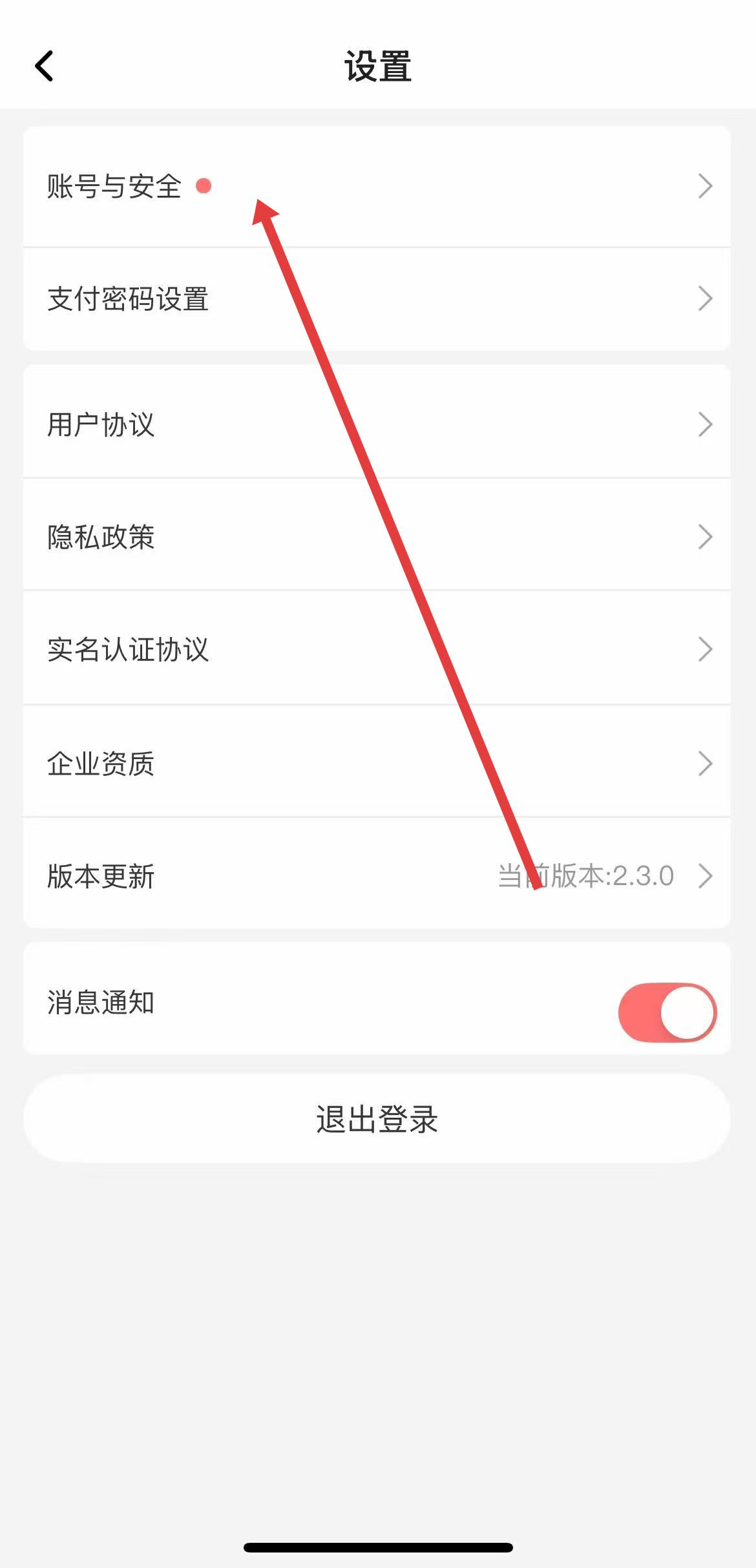 3、在設置頁面點擊賬號與安全,進入賬號與安全頁面。