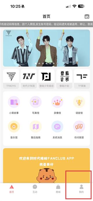 1、打開TF家族APP,點擊右下角我的,進入個人頁面。