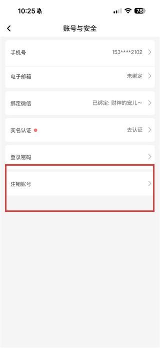 4、在賬號與安全頁面點擊注銷賬號,按照提示完成賬號注銷操作即可。