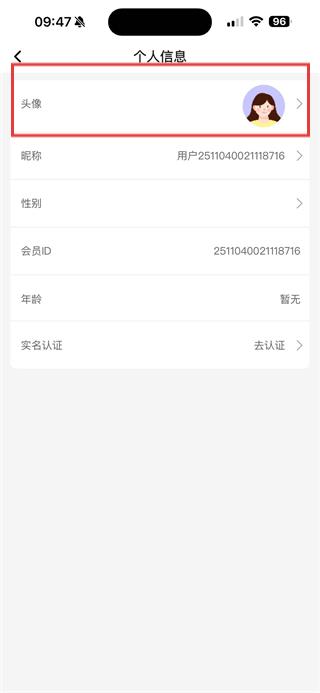 2、在個人頁面中點擊頭像,進入個人信息頁面。