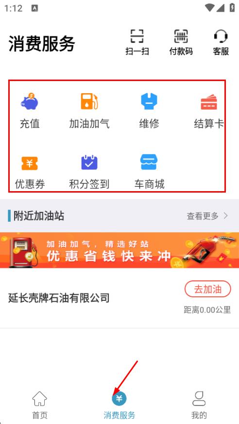 3、點擊底部導(dǎo)航欄的消費服務(wù),提供充值、加油加氣、維修、結(jié)算卡、優(yōu)惠券、積分簽到、車商城等功能,滿足司機(jī)在運營過程中的多樣化消費需求。