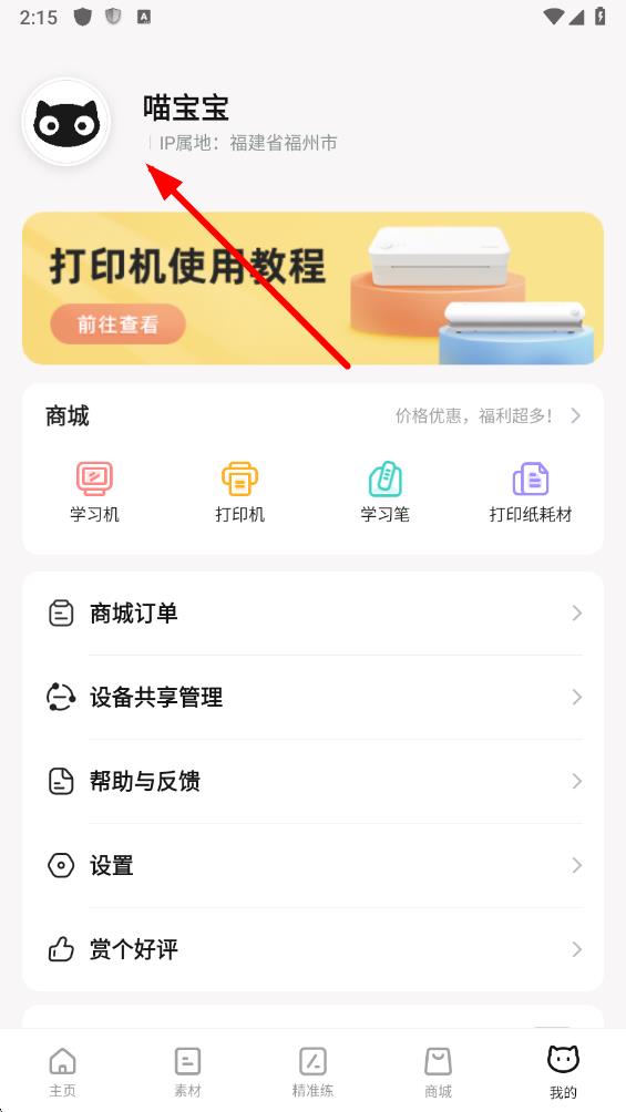 1、打開喵喵機APP,點擊底部導(dǎo)航欄中的我的圖標(biāo),進(jìn)入個人界面。