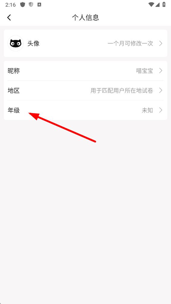 3、在個人信息頁面里,找到年級選項并點擊。