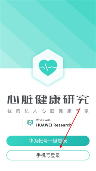 1、打開心臟健康研究app,點擊手機號登錄選項。