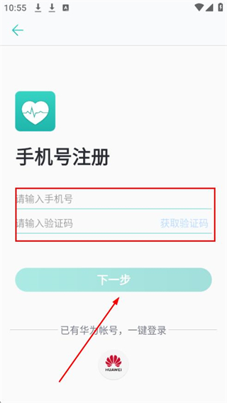 3、在手機號注冊頁面,輸入手機號,填入驗證碼,點擊下一步。