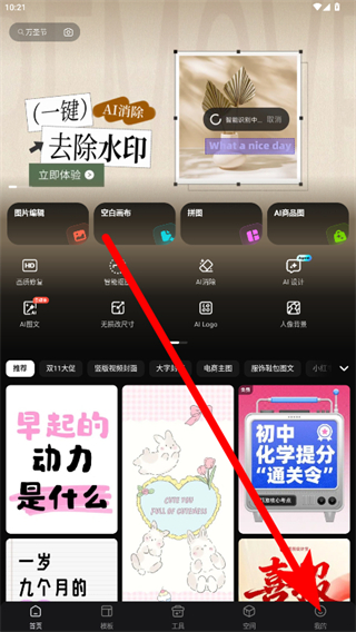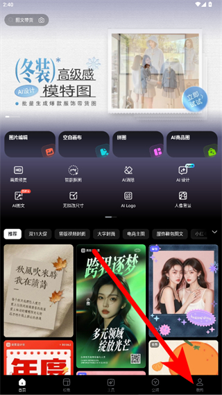 1、打開(kāi)美圖設(shè)計(jì)室應(yīng)用,點(diǎn)擊底部的我的選項(xiàng)。