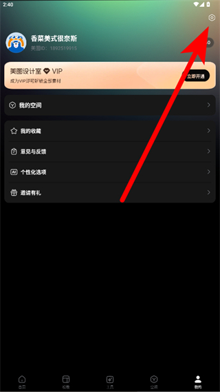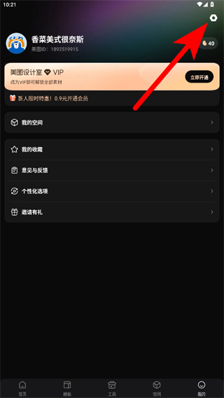 1、打開(kāi)美圖設(shè)計(jì)室APP,點(diǎn)擊右下角我的,進(jìn)入個(gè)人頁(yè)面。