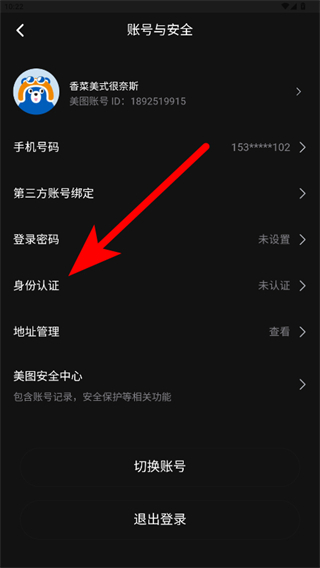 4、在賬號(hào)與安全頁(yè)面,點(diǎn)擊身份認(rèn)證選項(xiàng),按照提示完成身份信息認(rèn)證操作。