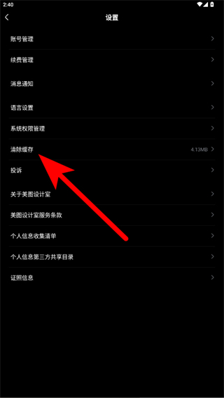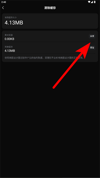 4、在清除緩存頁(yè)面點(diǎn)擊對(duì)應(yīng)緩存項(xiàng)右側(cè)的清理,即可清除美圖設(shè)計(jì)室的緩存數(shù)據(jù)。